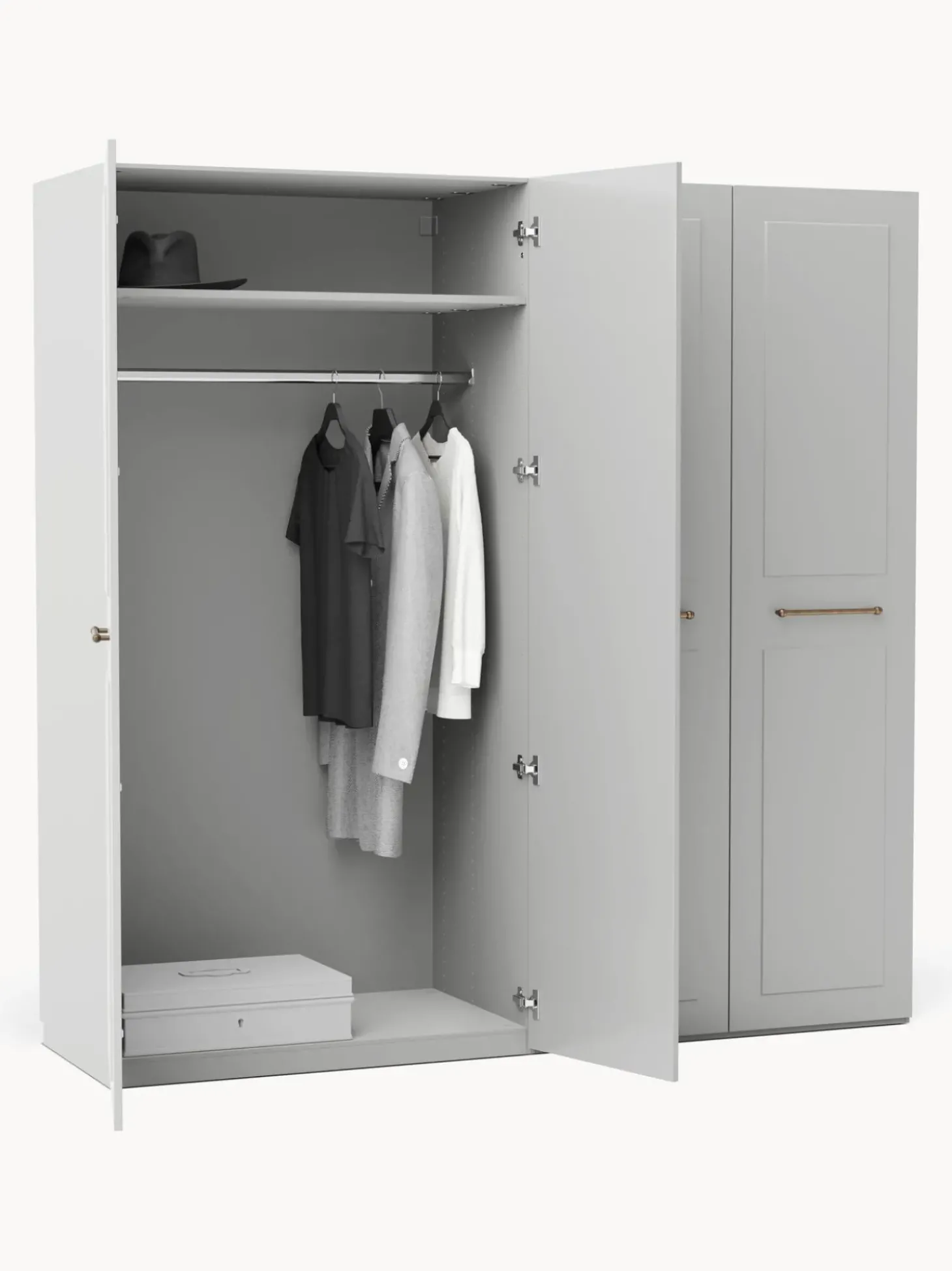 Molto Piu00F9 Di Un Semplice Guardaroba: Il Nostro Modello Charlotte Dell’Esclusiva Westwing Collection U00E8 Un Vero Tuttofare E Allo Stesso Tempo Un Grande Highlight Del Design. Il Stile Country Moderno Interpretato Con Lo Speciale Look 3D U00E8 Completato Dalle Maniglie Con Finitura In Ottone Antica. L’Armadio Colpisce Non Solo Per Il Suo Aspetto Speciale, Ma Anche Per Gli Interni Spaziosi E La Modularitu00E0! Il Modello U00E8 Disponibile In Diversi Colori, In Tre Diverse Versioni Interne (Basic, Classic, Premium), In Diverse Larghezze E Altezze Ed U00E8 Disponibile Con Porte Scorrevoli O Girevoli. Nessun Desiderio Rimane Insoddisfatto!Nn- Armadio Componibile Composto Da 2 Moduli Con Interno Basic: Inclusi 2 Aste Appendiabiti E 2 Ripianin- Porte Girevoli Con Sistema Soft-Closen- Aste Appendiabiti E Ripiani Regolabili In Altezzan- Costi Di Installazione Ridotti Grazie Alla Costruzione Verticale E Agli Elementi Dell’Armadio Preassemblatin- Made In Eunnil Design Incontra La Funzionalitu00E0: Crea Il Tuo Guardaroba Charlotte Personalizzato Combinando I Singoli Moduli O Ampliando Il Tuo Guardaroba Charlotte Giu00E0 Esistente. Puoi Trovare Tutti I Moduli Nella Nostra Gamma.Nnil Tuo Guardaroba Dovrebbe Essere Unico Come Il Tuo Stile! Ecco Perchu00E9 Il Nostro Guardaroba Charlotte U00E8 Disponibile In Tre Diversi Design Di Interni Che Soddisfano Tutte Le Esigenze:Nninterno Basic:N- Numero Di Aste Appendiabiti: 2N- Numero Di Ripiani: 2N- Numero Di Cassetti: 0Nninterno Classic:N- Numero Di Aste Appendiabiti: 1N- Numero Di Ripiani: 6N- Numero Di Cassetti: 0Nninterno Premium:N- Numero Di Aste Appendiabiti: 1N- Numero Di Ripiani: 6N- Numero Di Cassetti: 3