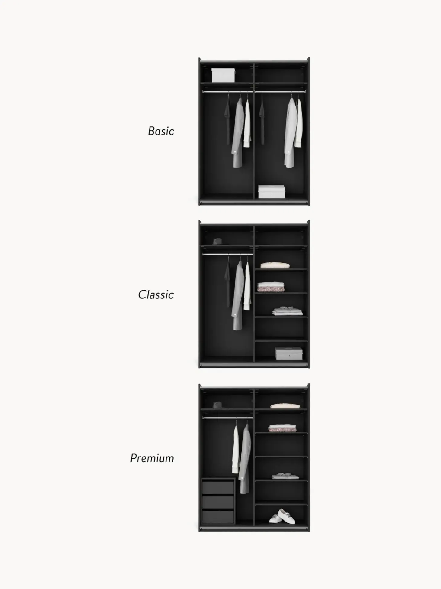 Pulito E Moderno Con Un Tocco Di Design Nessun Problema! Il Nostro Armadio Componibile Leon Dell’Esclusiva Collezione Westwing Ha Una Finitura Opaca E Lo Speciale Design Delle Maniglie Gli Conferisce Quel Qualcosa In Piu00F9! L’Armadio Si Adatta Quindi Perfettamente A Ogni Camera Da Letto, Pur Mantenendo Una Particolare Sensazione Di Design. Pratico: L’Armadio U00E8 Disponibile In Diverse Larghezze E Altezze E Con Tre Diversi Interni (Basic, Classic, Premium) E, A Scelta, Con Ante Scorrevoli O A Battente.Nn- Armadio Componibile Composto Da 2 Moduli Con Interno Basic: Incl. 2 Aste Aste Appendiabiti E 2 Ripiani.N- Ante Scorrevolin- Aste Appendiabiti E Ripiani Regolabili In Altezzan- La Struttura Verticale E Gli Elementi Del Guardaroba Preassemblati Consentono Di Ridurre Il Lavoro Di Montaggion- Made In Eunnil Design Incontra La Funzionalitu00E0. Create Il Vostro Guardaroba Leon Personalizzato Combinando I Singoli Moduli O Ampliando Il Guardaroba Leon Esistente. Nella Nostra Gamma Troverete Tutti I Moduli Leon.Nnil Vostro Guardaroba Dovrebbe Essere Unico Come Il Vostro Stile! Il Nostro Armadio Leon Vi Offre La Possibilitu00E0 Di Scegliere Tra Tre Diversi Interni Per Soddisfare Le Vostre Esigenze Individuali: Nninterni Basic:N- Numero Di Aste Appendiabiti: 2N- Numero Di Ripiani: 2N- Numero Di Cassetti: 0Nninterni Classic:N- Numero Di Aste Appendiabiti: 1N- Numero Di Ripiani: 6N- Numero Di Cassetti: 0Nninterni Premium: N- Numero Di Aste Appendiabiti: 1N- Numero Di Ripiani: 6N- Numero Di Cassetti: 3
