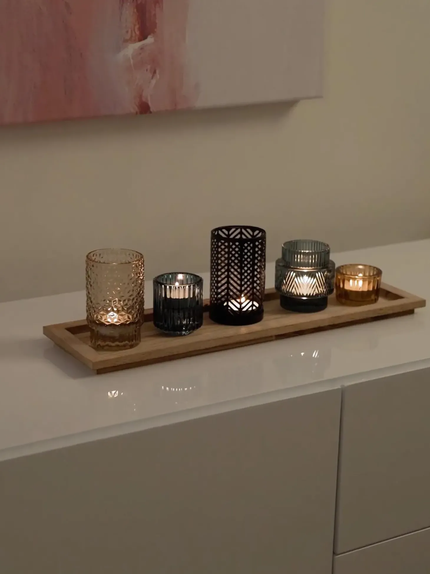 Il Set Di Lanterne Decorative U00E8 Composto Da Cinque Diverse Lanterne E Un Vassoio Di Legno.