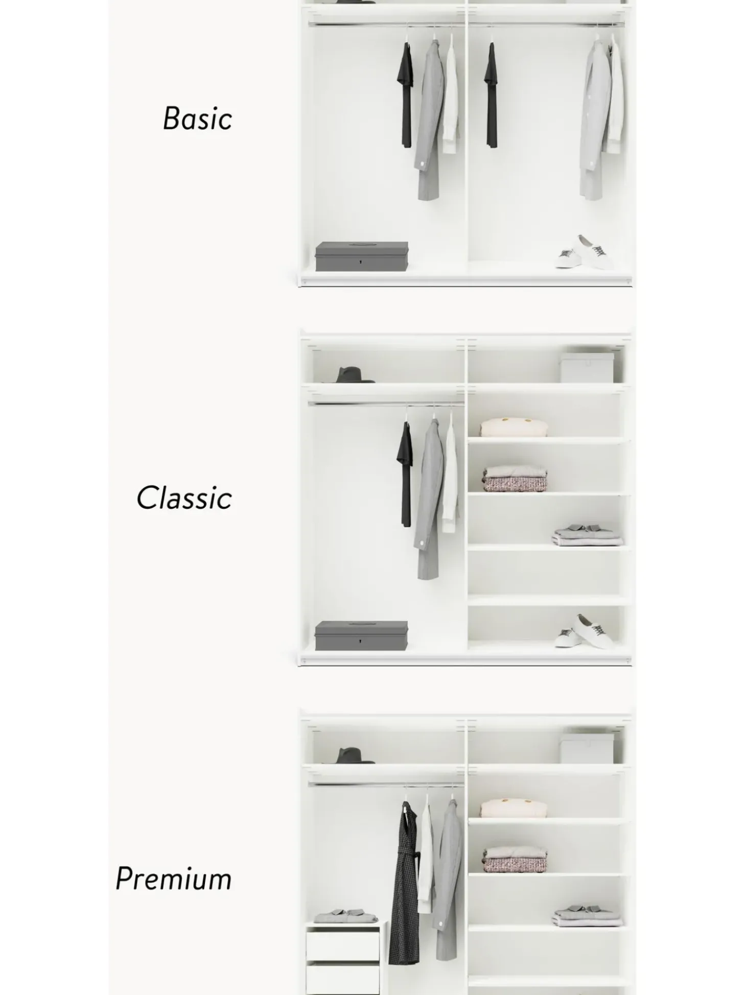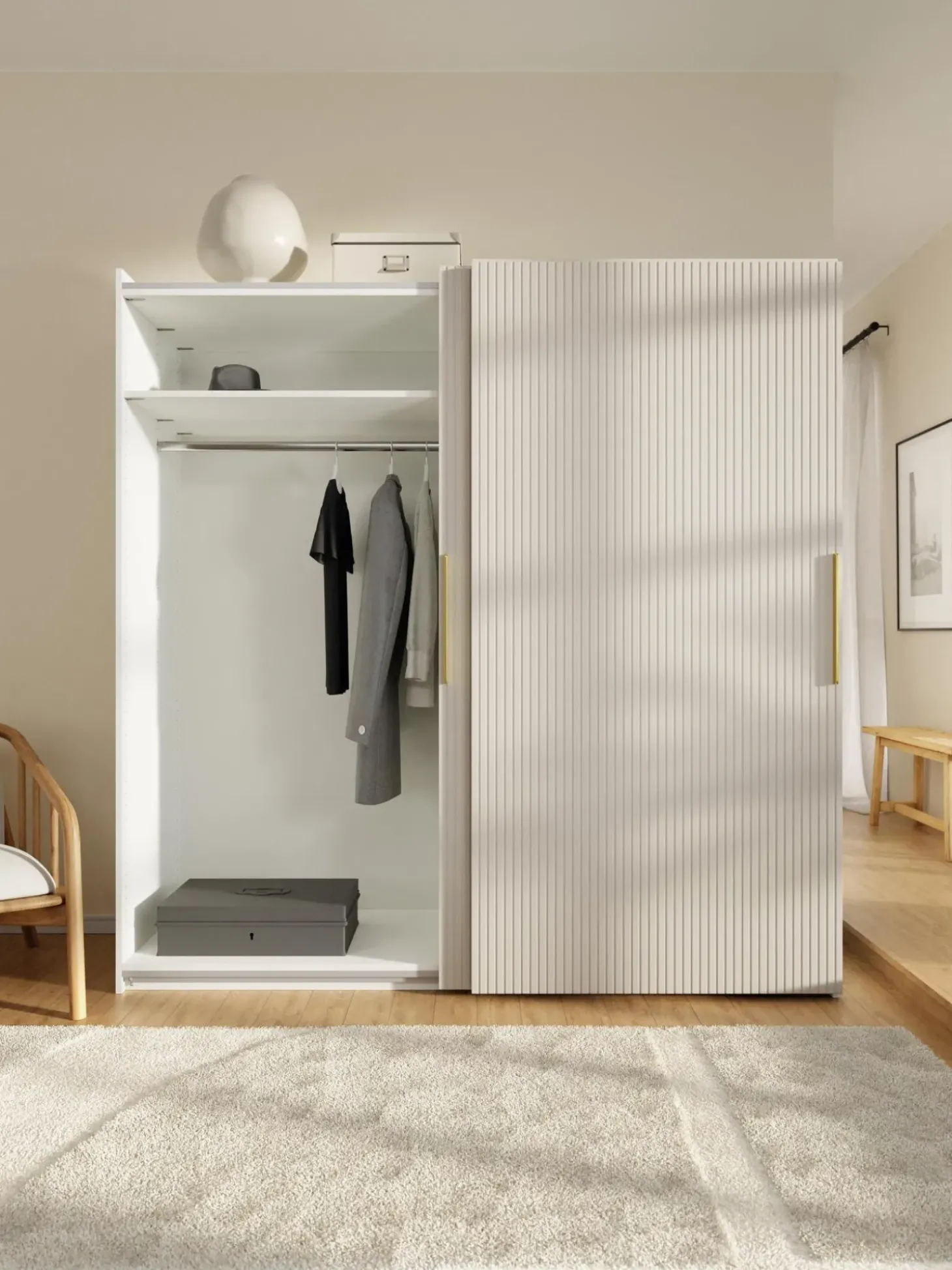 Unico. Diverso. Modulare. La Serie Di Guardaroba Simone Dell’Esclusiva Collezione Westwing U00E8 Progettata Con Grande Attenzione Ai Dettagli! L’Armadio U00E8 Disponibile In Tre Diversi Interni (Basic, Classic, Premium) E In Diverse Larghezze E Altezze, E Con Ante Scorrevoli O A Battente. L’Armadio Non Convince Solo Per La Praticitu00E0 Degli Interni, Ma Anche Per L’Insolito Aspetto A Doghe Delle Ante. Un Vero Highlight Di Stile In Ogni Camera Da Letto!N N- Armadio Componibile Composto Da 2 Moduli Con Interni Premium: Incl. 1 Asta Appendiabiti, 6 Ripiani, 3 Cassettin- Ante Scorrevolin- Aste Appendiabiti E Ripiani Regolabili In Altezzan- Cassettiera Preassemblata E Posizionabile Singolarmenten- La Struttura Verticale E Gli Elementi Preassemblati Dell’Armadio Consentono Di Ridurre Il Lavoro Di Montaggio.N- Made In Eunnil Design Incontra La Funzionalitu00E0. Create Il Vostro Guardaroba Simone Personalizzato Combinando I Singoli Moduli O Ampliando Il Guardaroba Simone Esistente. Troverete Tutti I Moduli Simone Nella Nostra Gamma.N Nil Vostro Guardaroba Dovrebbe Essere Unico Come Il Vostro Stile! Il Nostro Armadio Simone Vi Offre La Possibilitu00E0 Di Scegliere Tra Tre Diversi Interni Per Soddisfare Le Vostre Esigenze Individuali: N Ninterni Basic:N- Numero Di Appendiabiti: 2N- Numero Di Ripiani: 2N- Numero Di Cassetti: 0N Ninterni Classic:N- Numero Di Appendiabiti: 1N- Numero Di Ripiani: 6N- Numero Di Cassetti: 0N Ninterni Premium: N- Numero Di Aste Per Abiti: 1N- Numero Di Ripiani: 6N- Numero Di Cassetti: 3