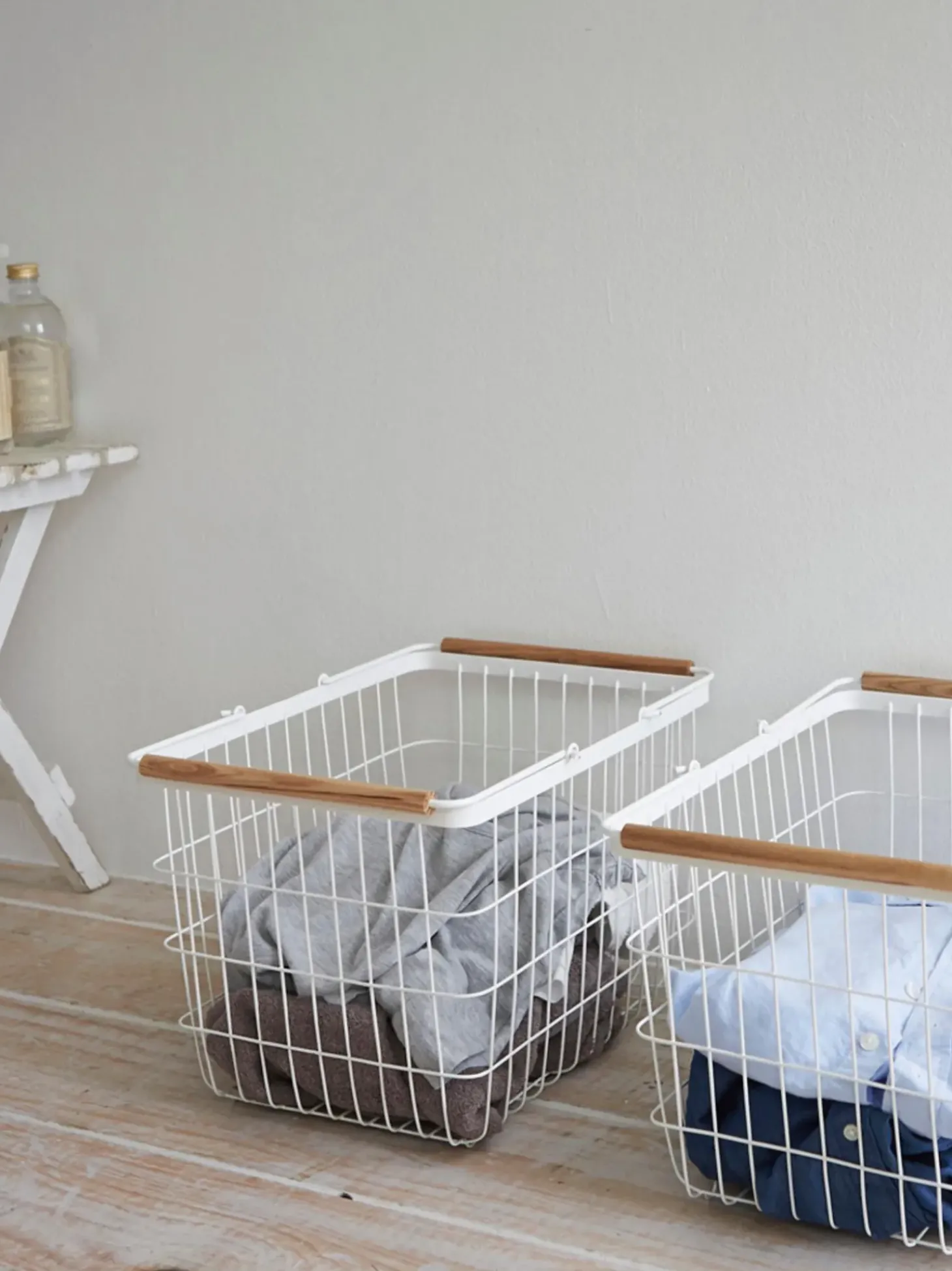 Cesta Custodia Con Manici In Legno Girevoli