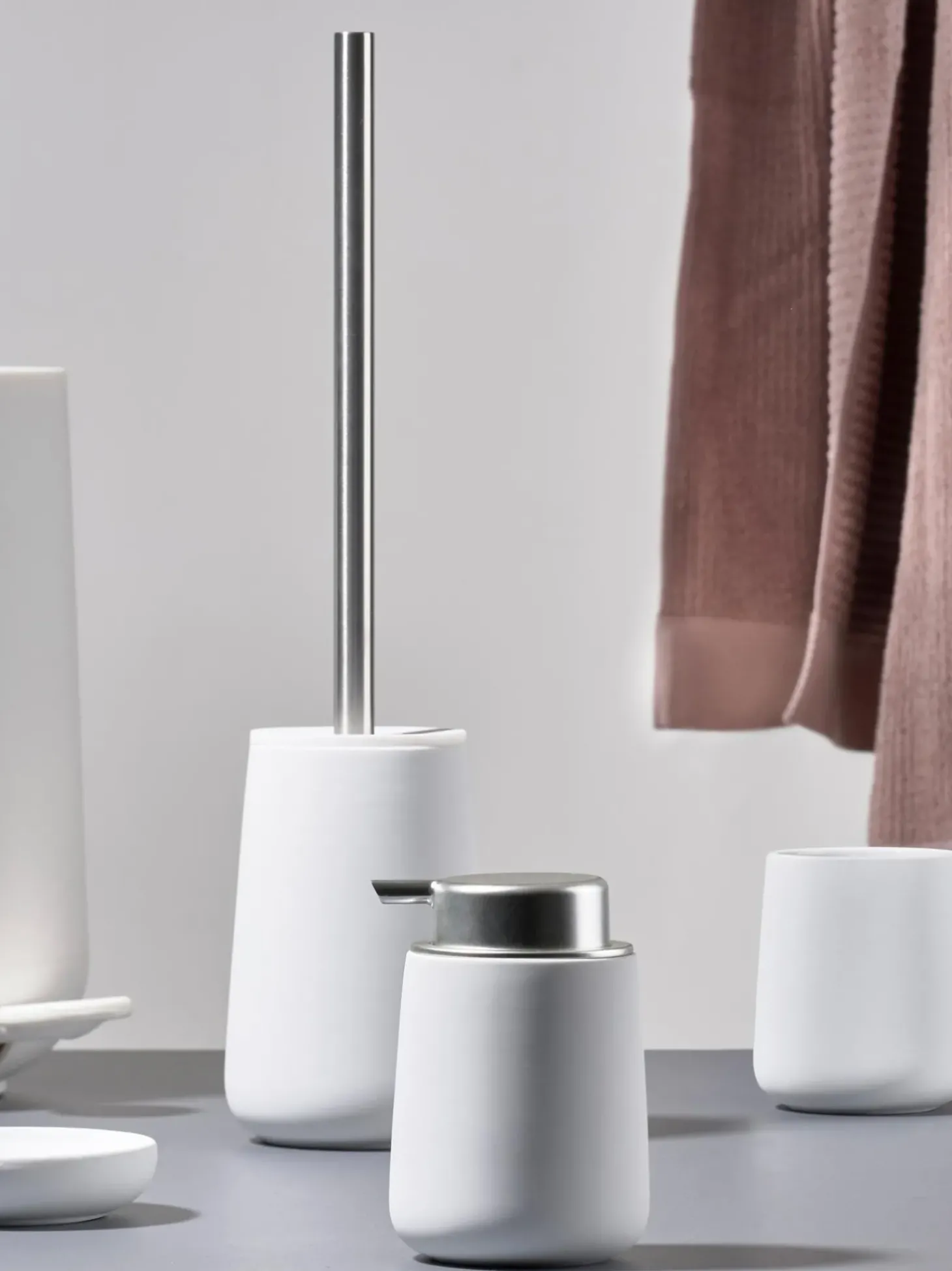 La Tazza Portaspazzolini Con Superficie Soft-Touch Puu00F2 Essere Abbinata Ad Altri Prodotti Della Serie Nova.