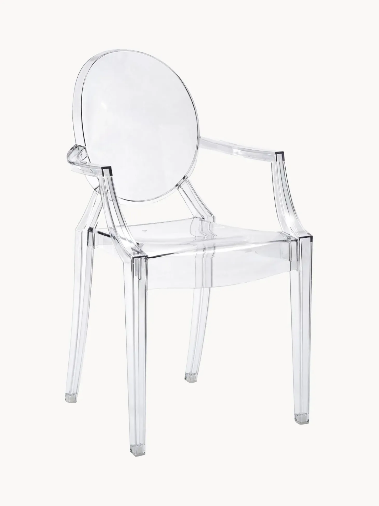 Con Louis Ghost, Il Designer Philippe Starck Ha Creato Un’Interpretazione Moderna Della Poltrona Luigi Xv, Emblema Dello Stile Barocco. Un Prodotto Dal Notevole Carisma, Che U00E8 Anche Decisamente Innovativo In Termini Di Tecnologia: U00E8 Prodotto Senza Soluzione Di Continuitu00E0 In Un Unico Pezzo Con Il Processo Di Stampaggio A Iniezione. Nonostante L’Aspetto Delicato E Trasparente, Questa Sedia U00E8 Stabile E Resistente, A Prova Di Urti E Persino Di Agenti Atmosferici, Per Cui Puu00F2 Essere Utilizzata Sia All’Interno Che All’Esterno: Come Sedia Discreta Per Il Tavolo Da Pranzo O Come Sedia Da Giardino Molto Speciale.Nnrisparmia Spazio Semplicemente Impilando Louis Uno Sopra L’Altro.