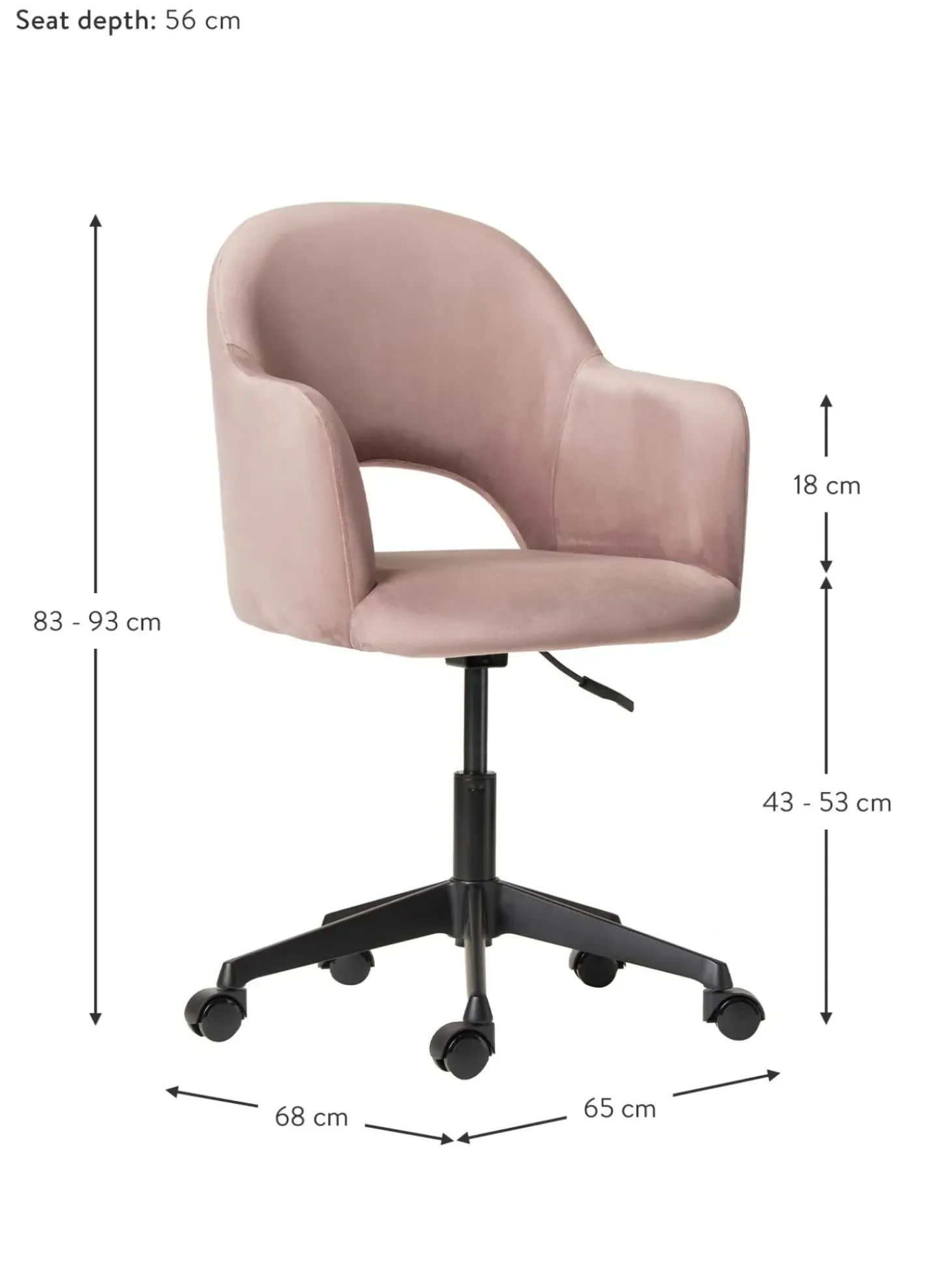 Sedia Da Scrivania In Velluto Rachel, Regolabile In Altezza