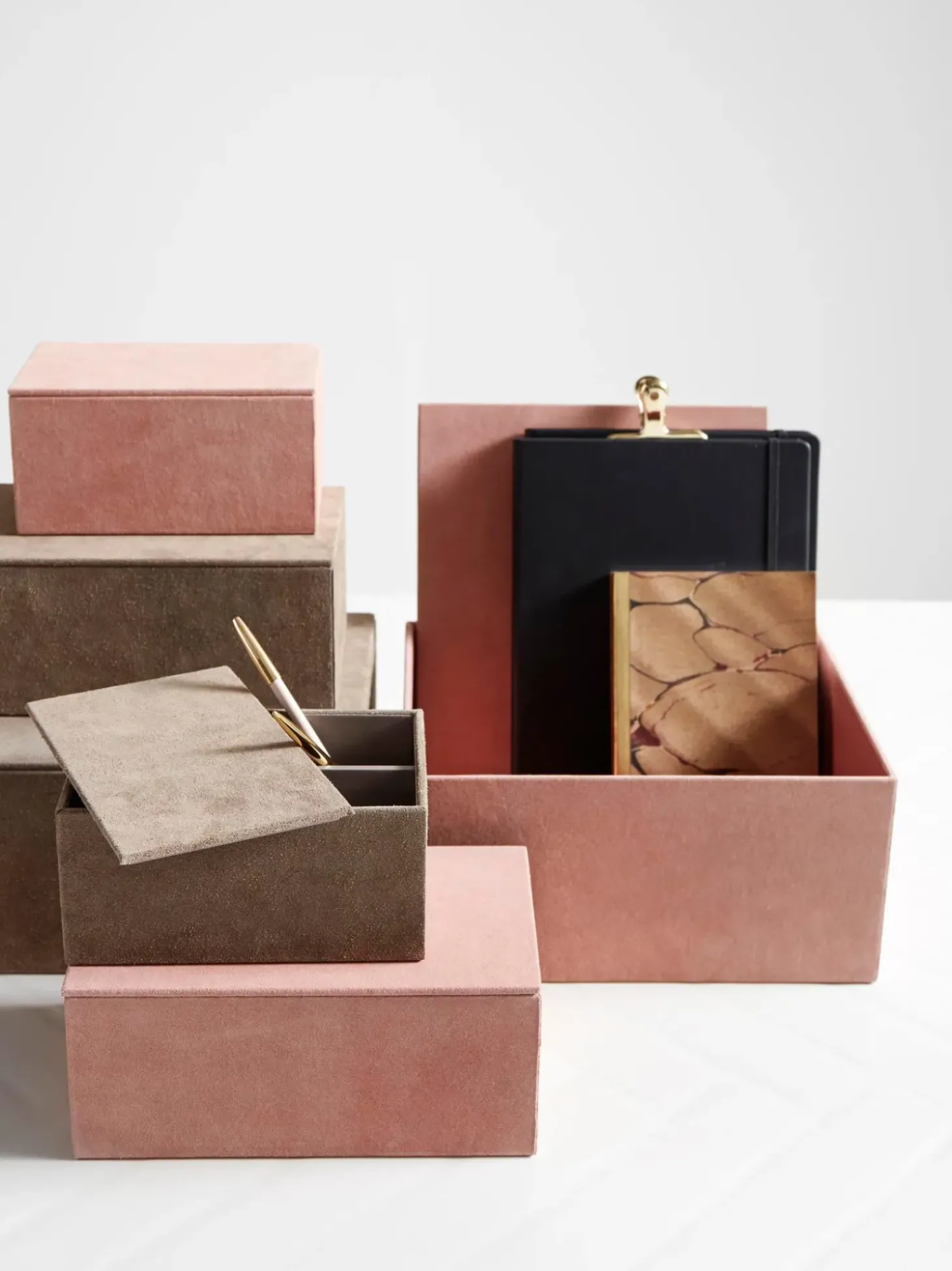 Set 3 Scatole Portaoggetti In Pelle Di Capra Mario