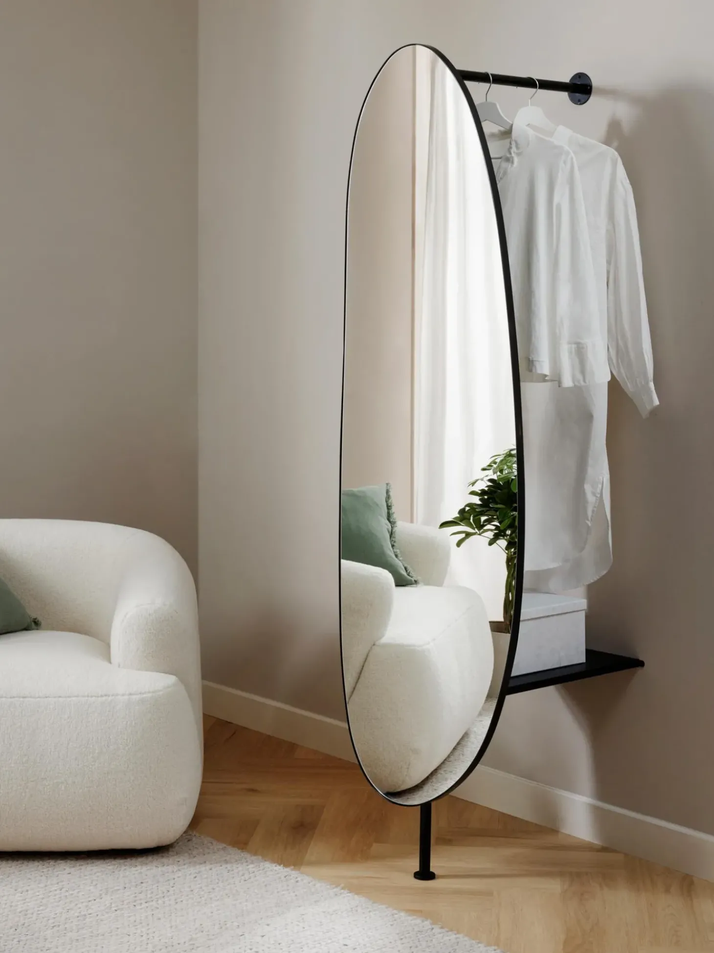 Il Multitasking U00E8 All’Ordine Del Giorno! Il Nostro Specchio Da Terra Ha Un Appendiabiti Integrato E Uno Spazio Di Archiviazione.