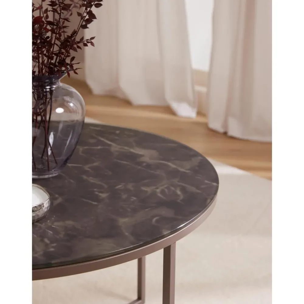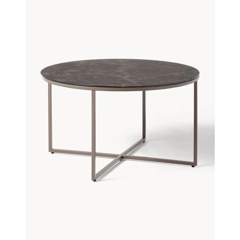 Tavolino Rotondo Da Salotto Con Piano In Vetro Effetto Marmo Antigua*Westwing Collection Best