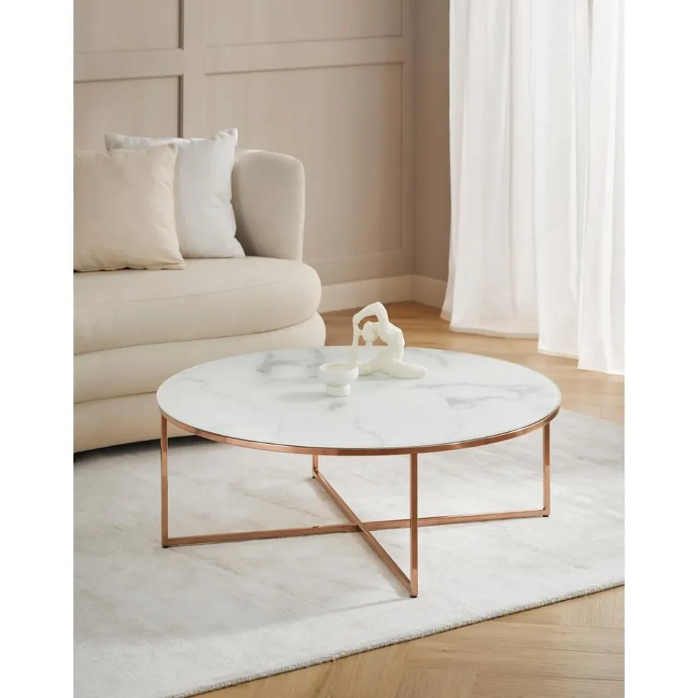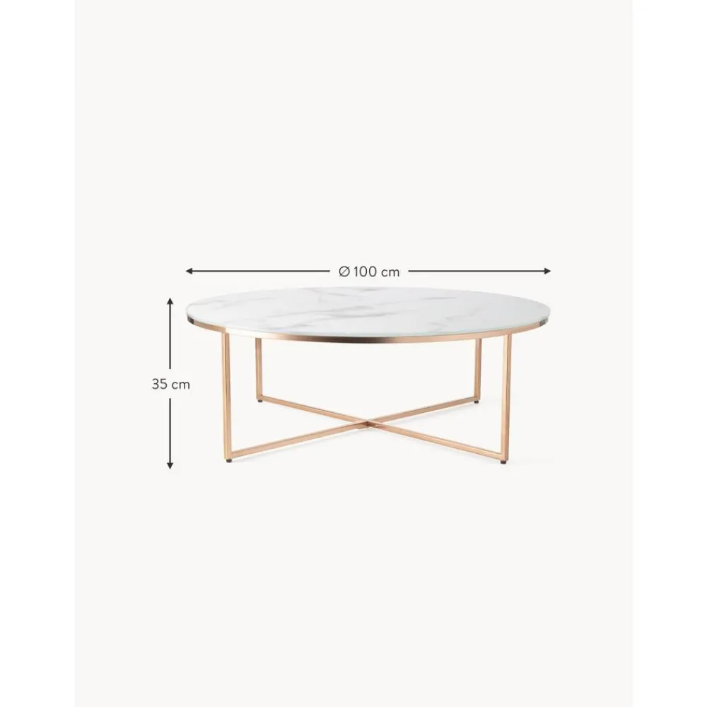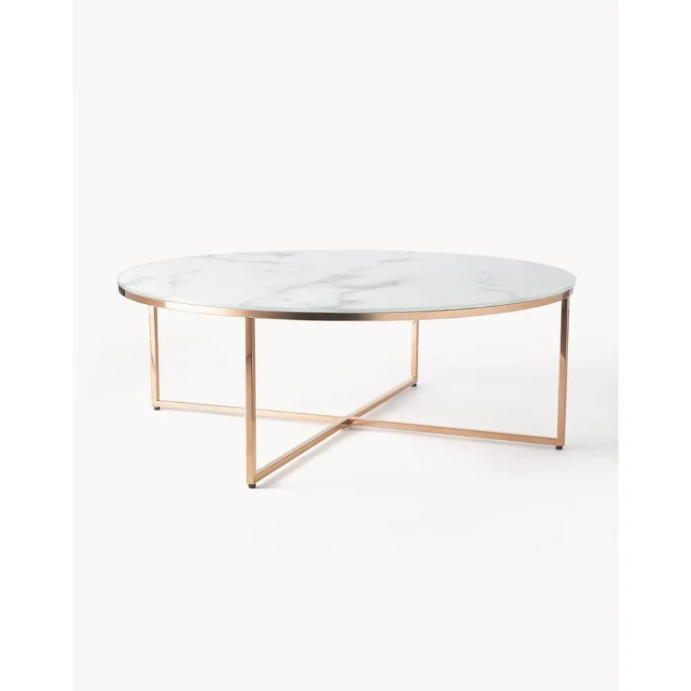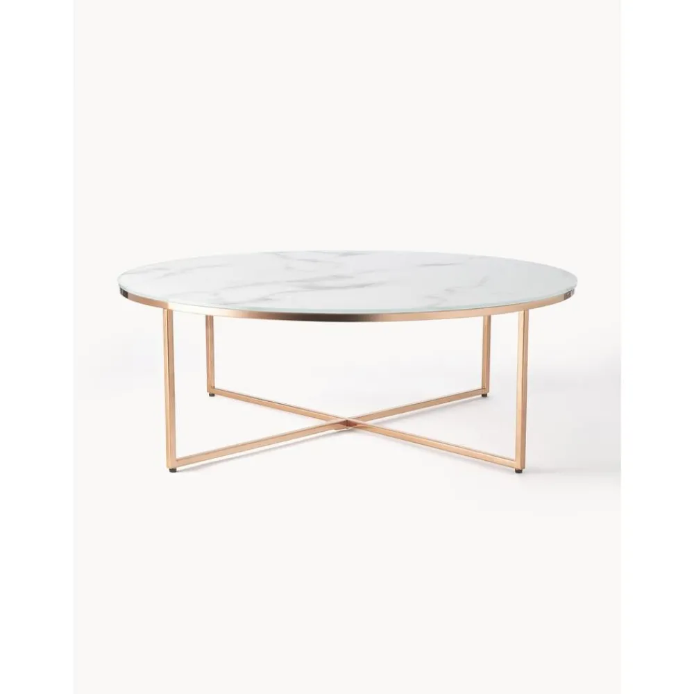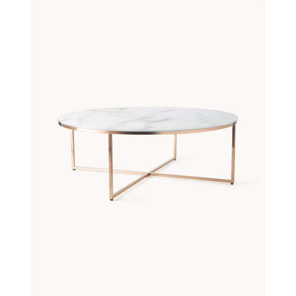 Tavolino Rotondo Xl Da Salotto Con Piano In Vetro Effetto Marmo Antigua*Westwing Collection Fashion