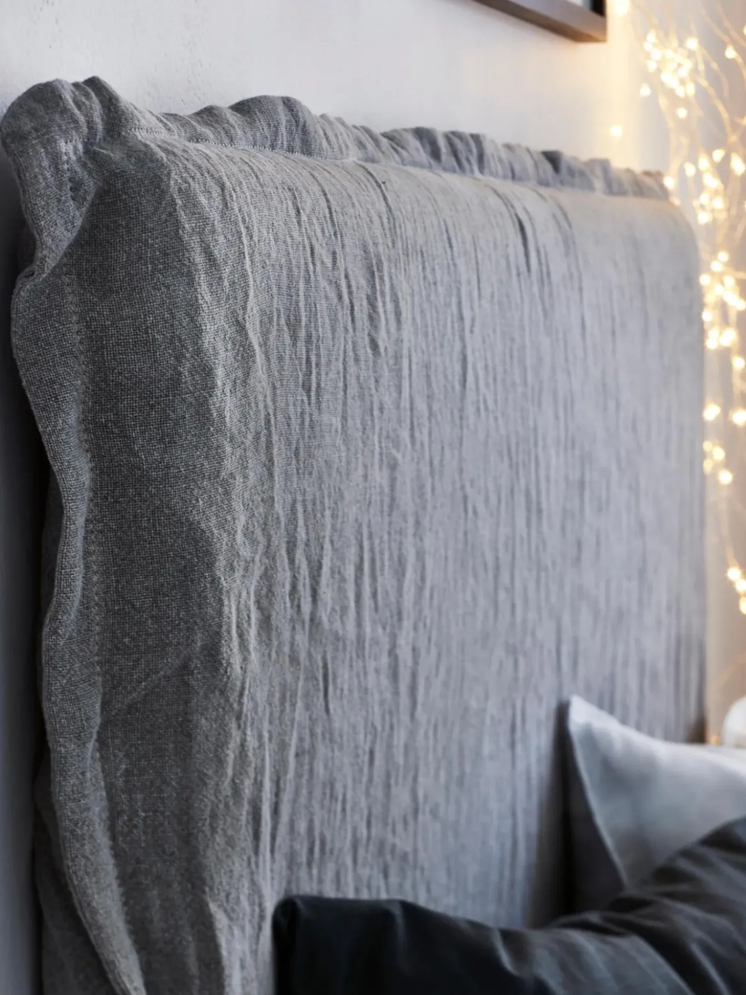 La Testiera Palma Aggiunge Un Look Fresco A Qualsiasi Stanza. Il Tessuto Di Lino Fa Sembrare Tutto Casual, Quindi Anche Un Letto Sfatto Non Distrae